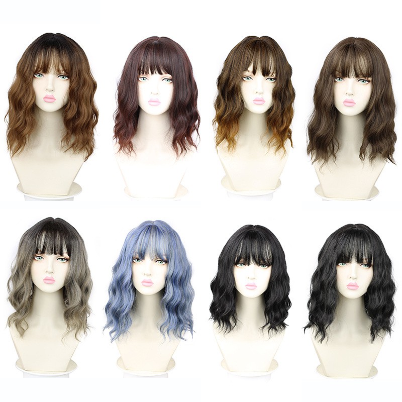 Tips for curly hair bangs 1. If you're going on a date night, straighten just the bangs and pair your blonde curly lob with a bold red lip. Swooping your bangs to the side creates an angled effect. There are many different types of bangs, and most of them can be pulled off by a girl with a round face. But bangs can still look great with your face shape.